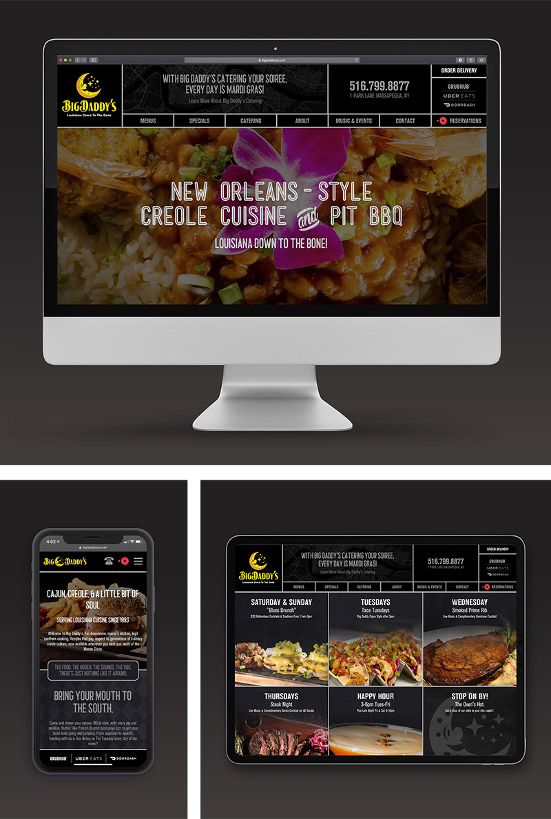 Brand Evolution & Digital-First Repositioning — Big Daddy’s, an iconic New Orleans–style Creole and BBQ institution on Long Island, called me with a project I don’t get every day—and one I still remember clearly. Having spent years eating my way through the menu and holding a deep personal love for New Orleans cuisine, the opportunity to evolve a place I already cared about was a genuine career highlight. The challenge was to elevate the brand without losing the character and authenticity that made it special. I led a polished evolution of the identity, messaging, and design system, with a deliberate focus on digital. Food photography became the foundation of the work, and with direct access to the kitchen and chef, I produced an extensive visual library that powered social, email, and web—helping Big Daddy’s show up with confidence, crave appeal, and personality across every channel.